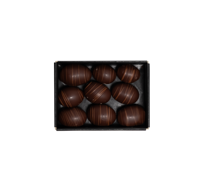 In Grappa eingelegte, türkische Trauben mit Zuckerfondant, dunkler und heller Grand Cru-Schokolade.